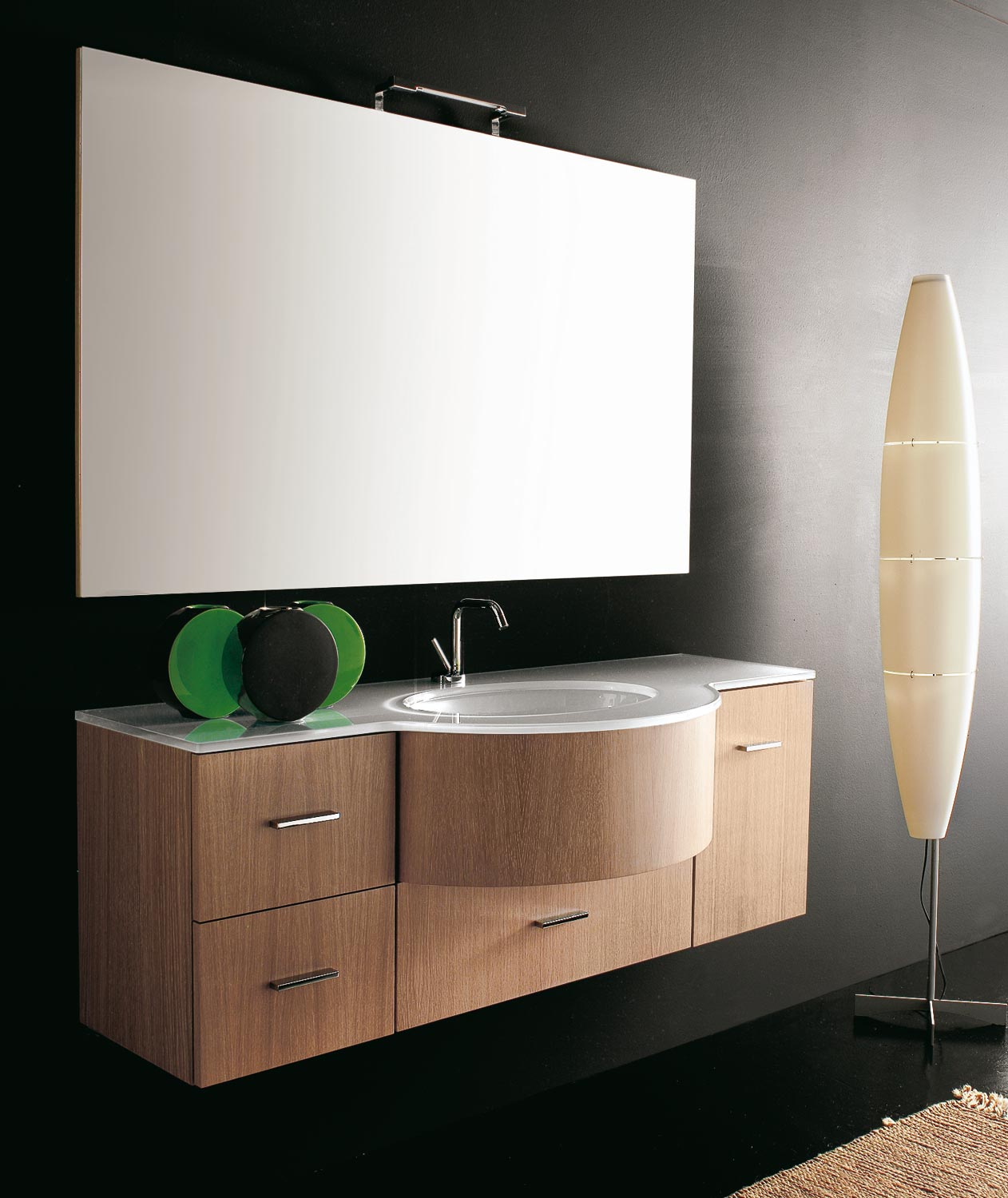 Composition COMPOS 130 made of natural oak RN06, composed of one base-unit art. COS/B4 cm. 34x36x50h, one base-unit art. COS/C4 da cm. 34x36x50h, one base-unit built in wash-basin art. COS/L1 cm. 68x58x50h. White Crystal top BI84 - art. ST1/136. Ceramic washbasin art. ROBERTA. Mirror art. MC22/136 cm. 136x82H, lamp art. CAS1 97