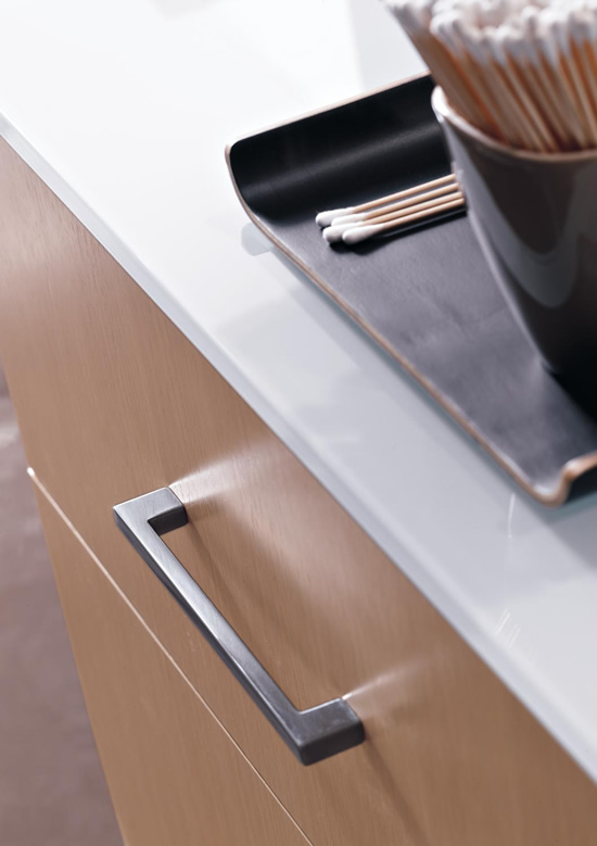 Detailed view of the bleached oak finish with chrome-plated brass handle mod. "F".