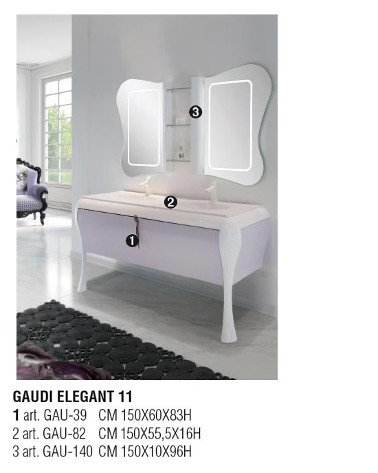 GAUDÌ ELEGANT 11 cm. 150, white lacquered polished G86, G78 wisteria polished, shiny washbasin top tecnoril.