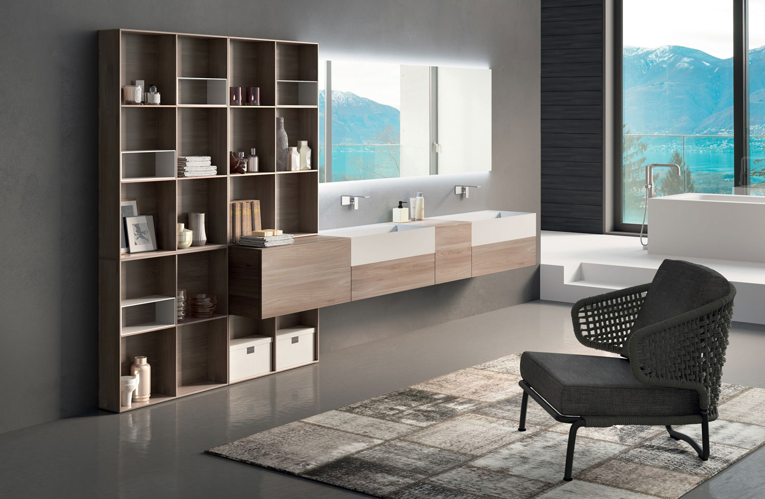 SYN 07 335 cm olmo naturale 7965 lavabi Tecnoril Bianco Opaco
